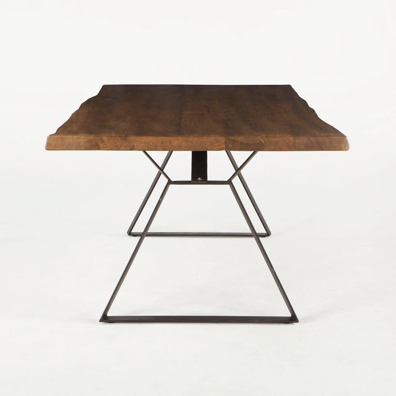 The perfect balance of industrial and rustic styles intersect to create the hand-crafted London Loft dining table. A breathtaking solid Acacia wood live edge slab floats atop modern hand forged steel base. The London Loft Collection is one of our best-selling collections.